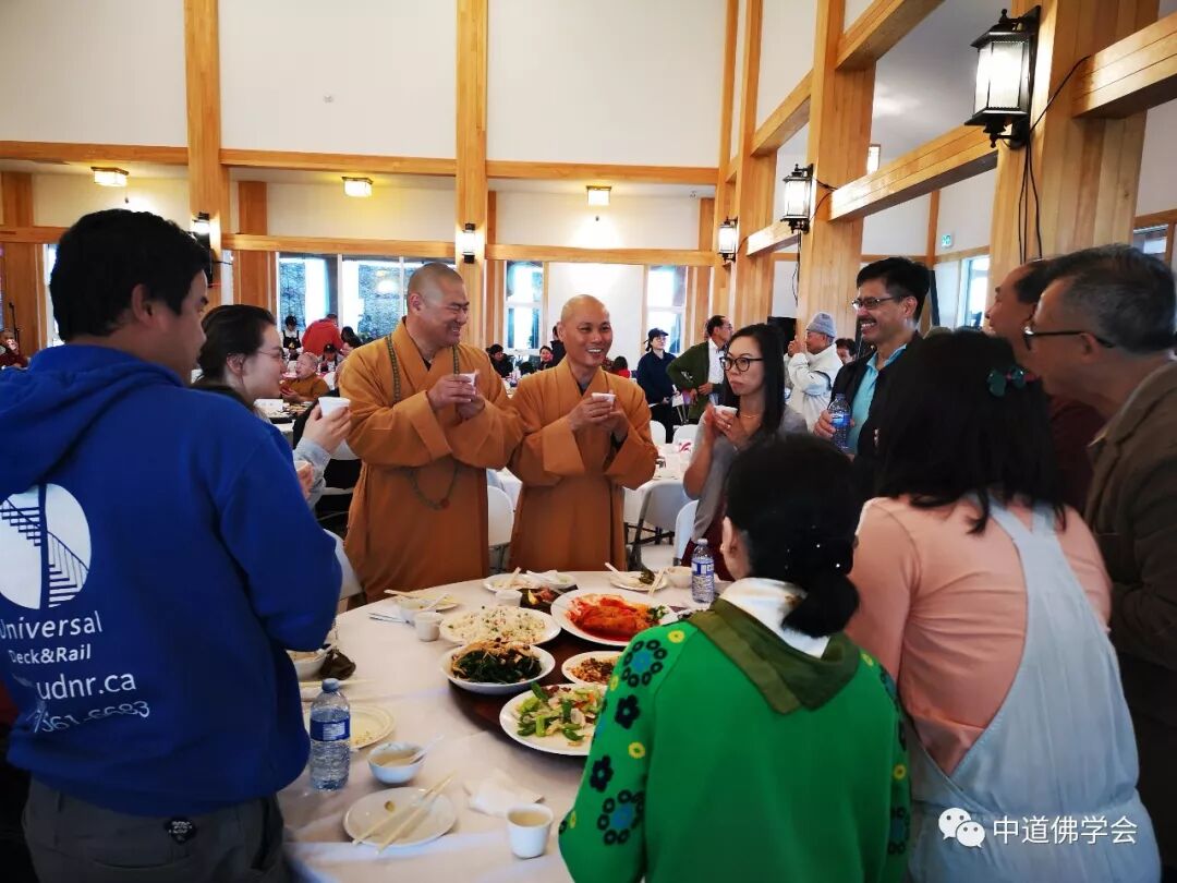儀式結束後,法師們與信眾一起合影留念並共進素宴,中道佛學會的義工們還為大家準備了精彩的演出。